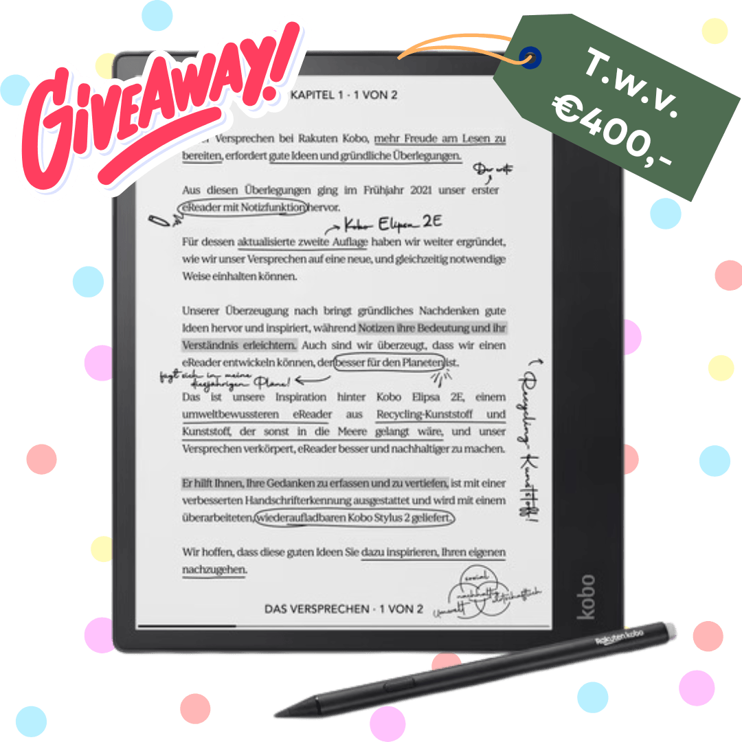 Eerste prijs: Kobo Elipsa 2E e-reader met Kobo Stylus 2 (t.w.v. €400,-)